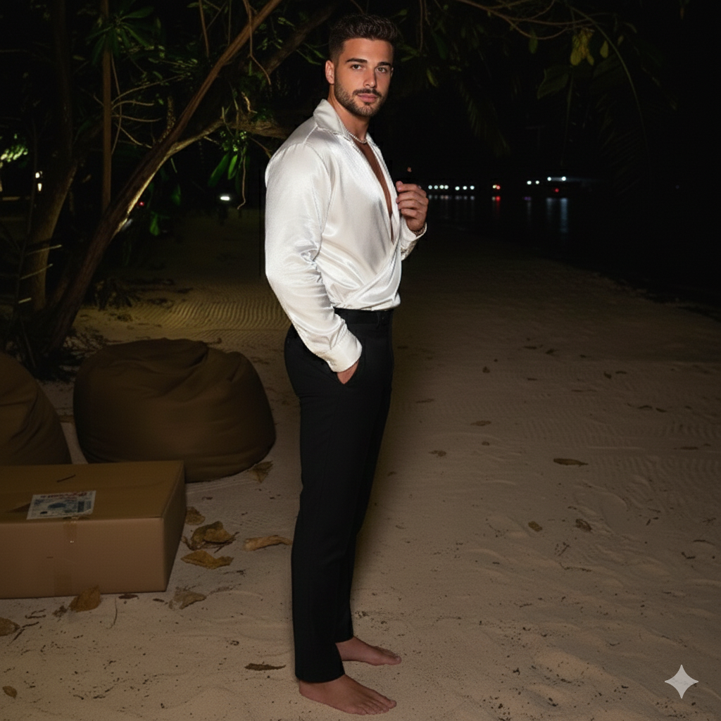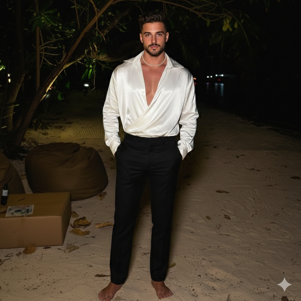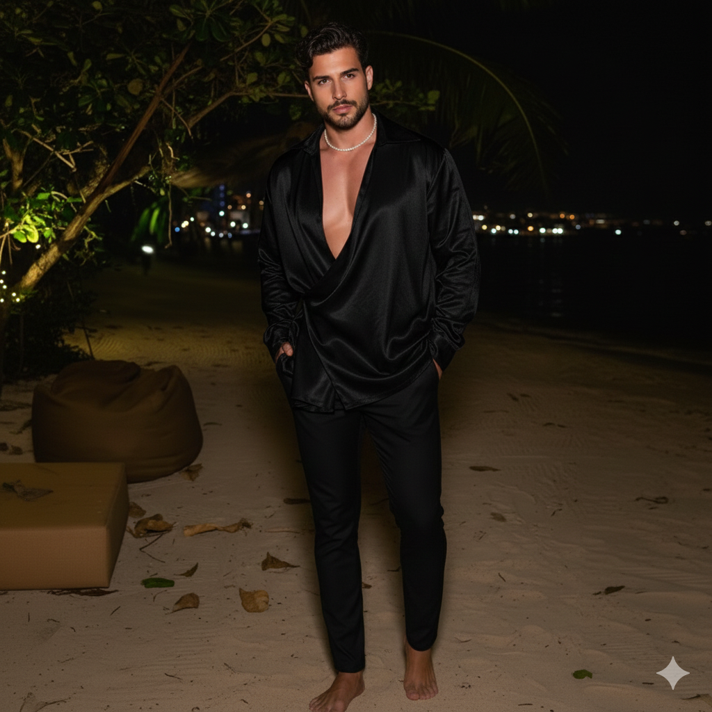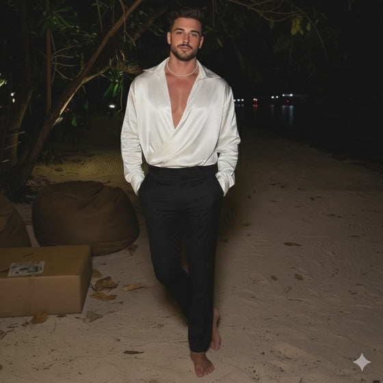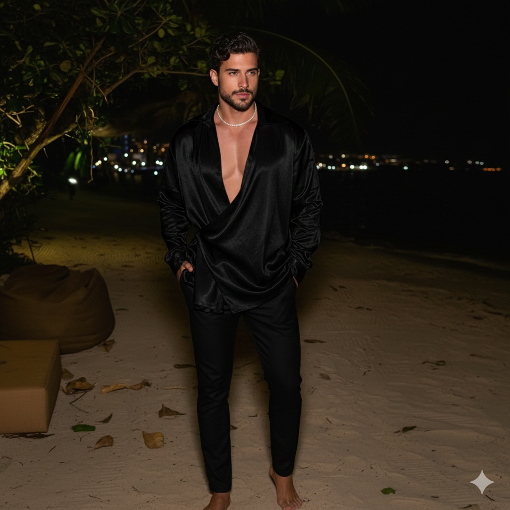 Camisa de Drapeado Estilo Europeo para Hombre - Diseño en Seda y Corte Moderno