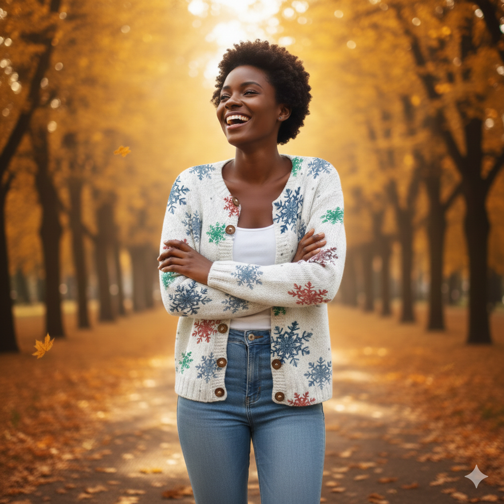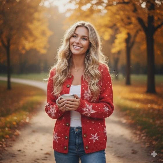 Cárdigan con Botones Navideños - Suéter de Cuello Redondo y Manga Larga | Prendas de Punto Festivas para Mujer
