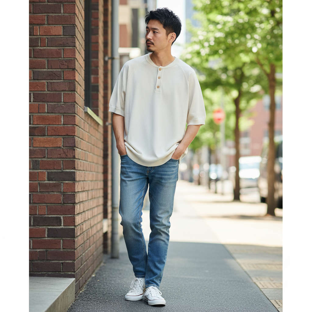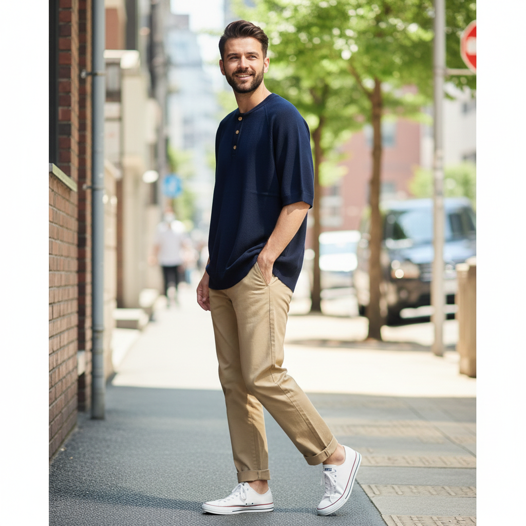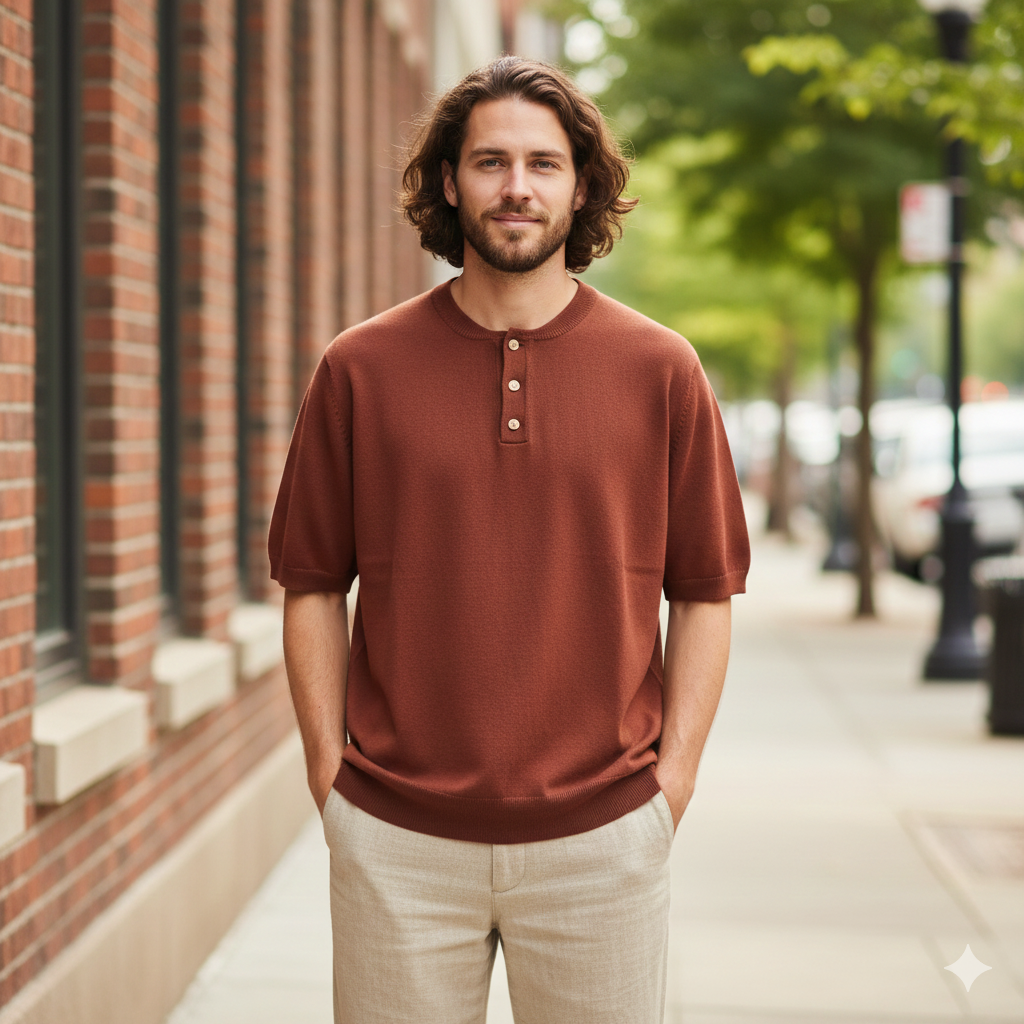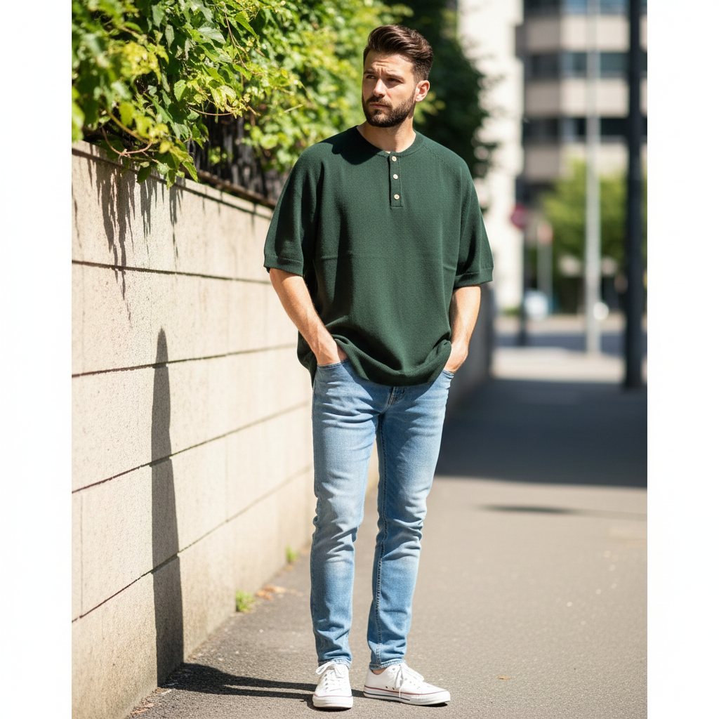 Camiseta de Punto Grueso con Cuello Henry - Tejido Pesado y Acogedor