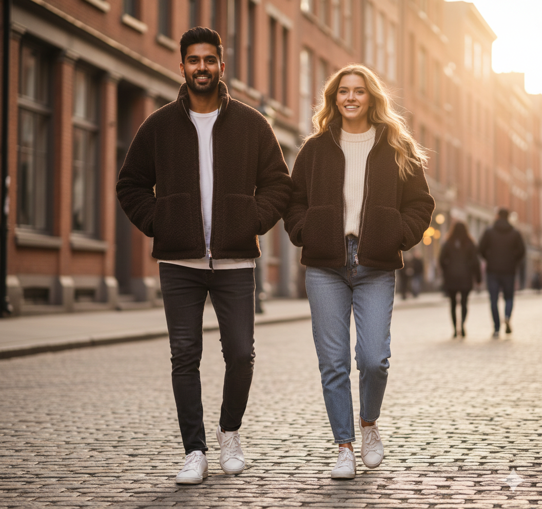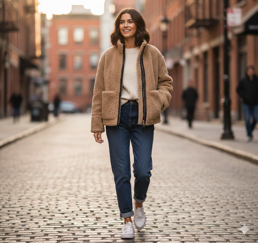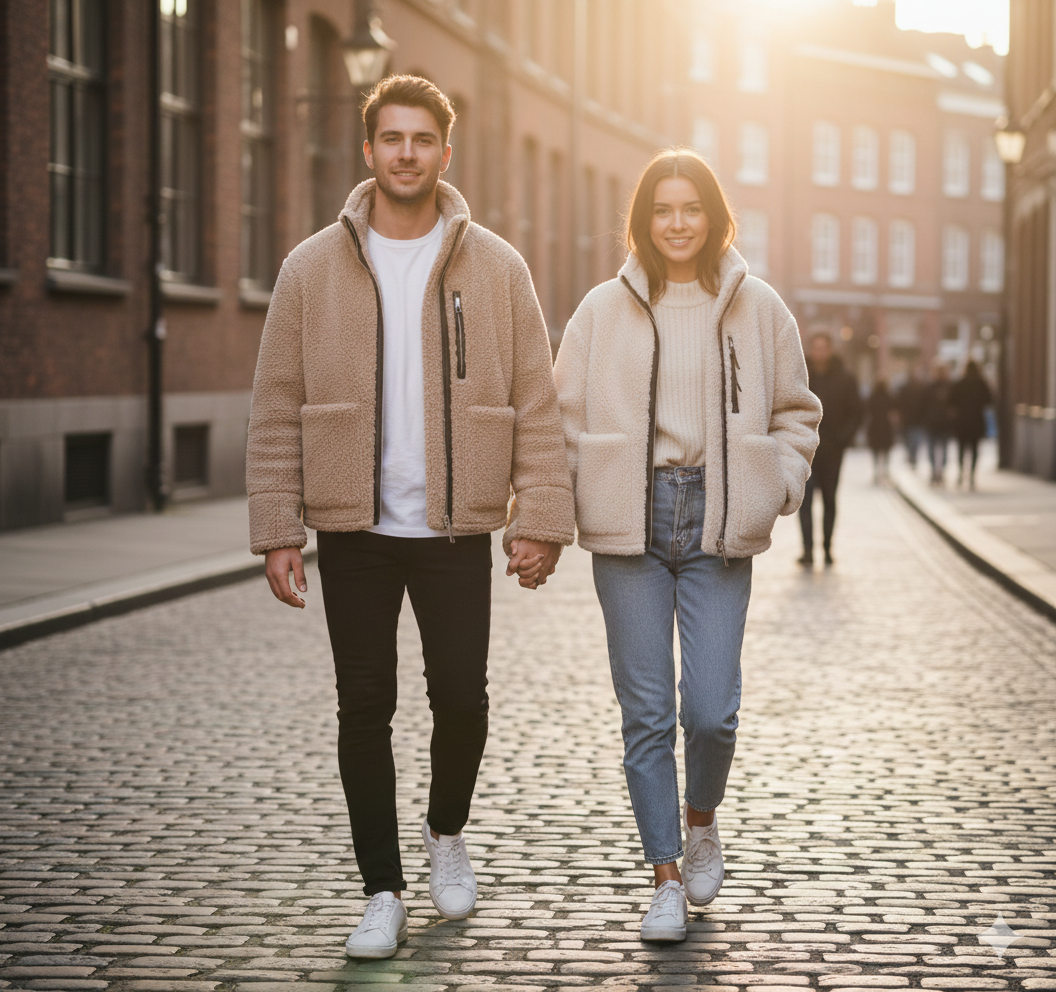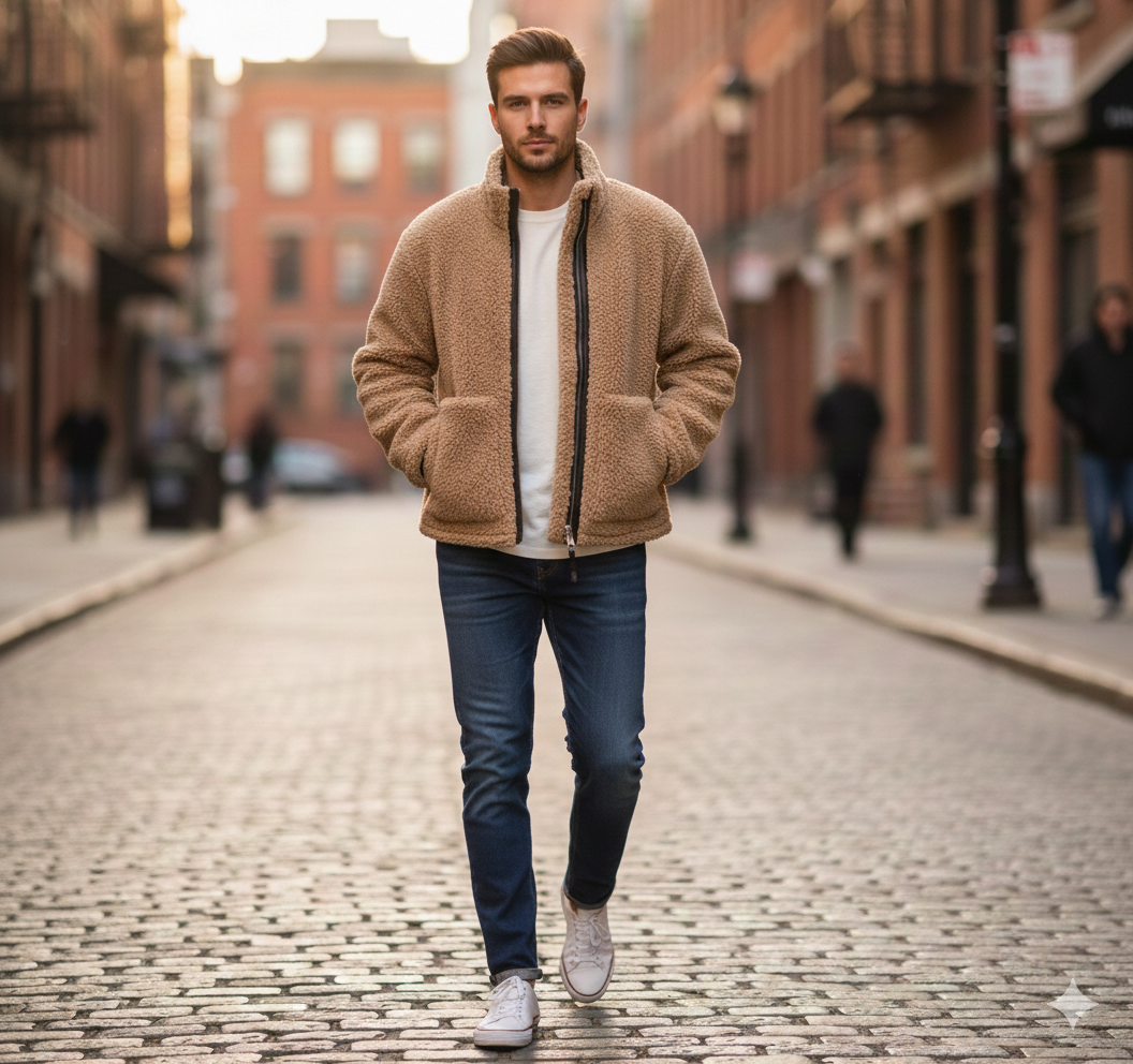 Chaqueta de Peluche con Cuello Polo de Invierno