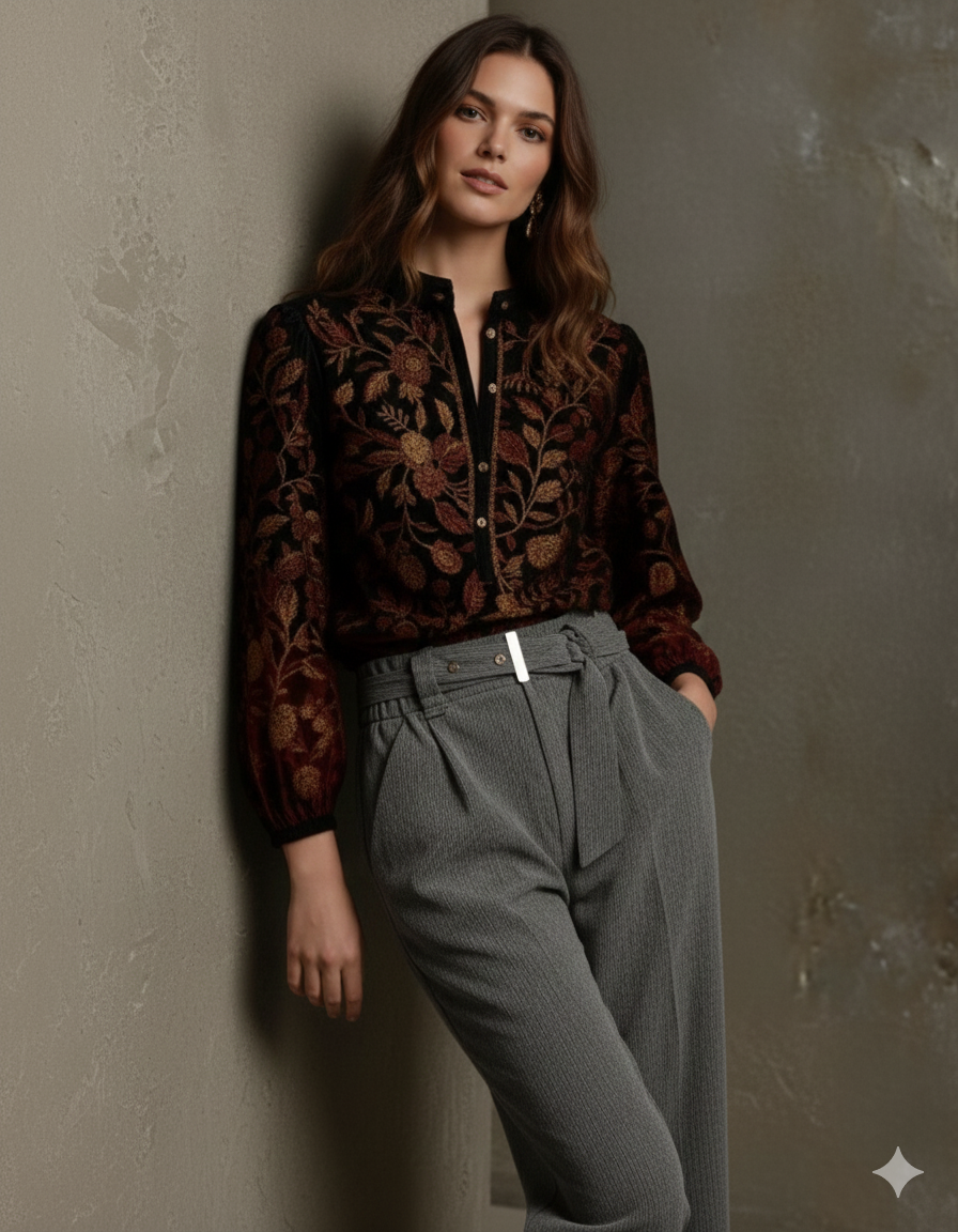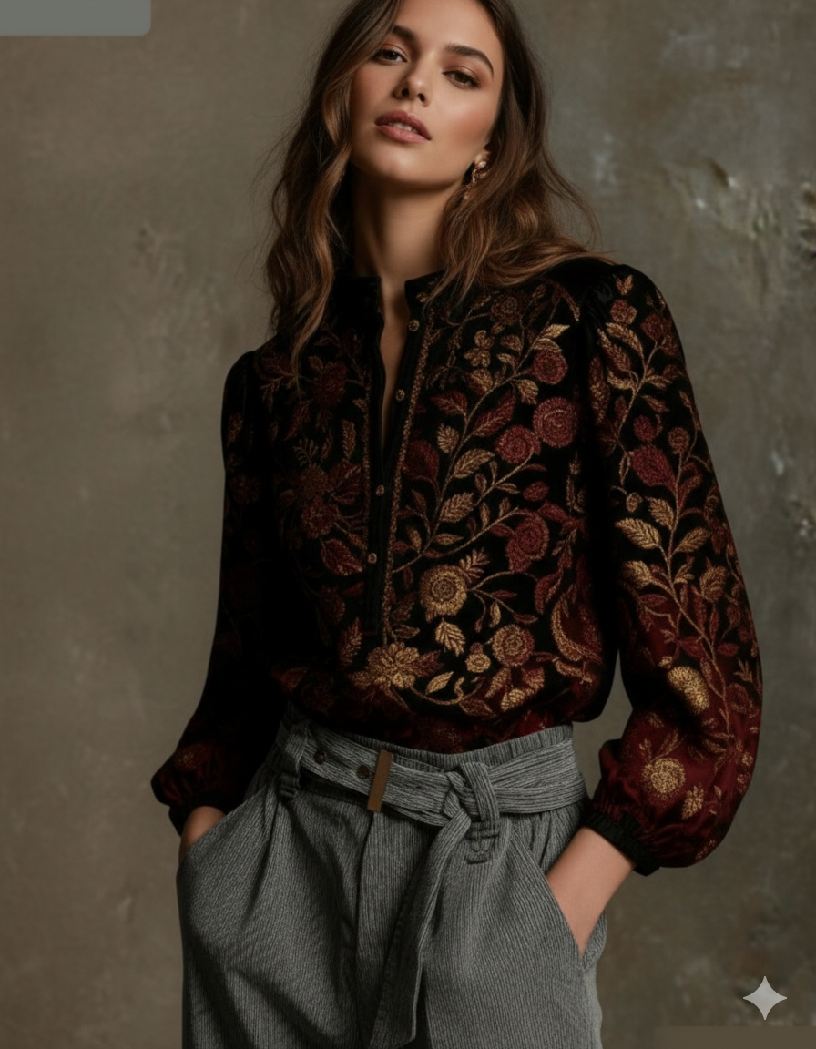 Chaqueta de Terciopelo Estilo Retro con Estampado Floral