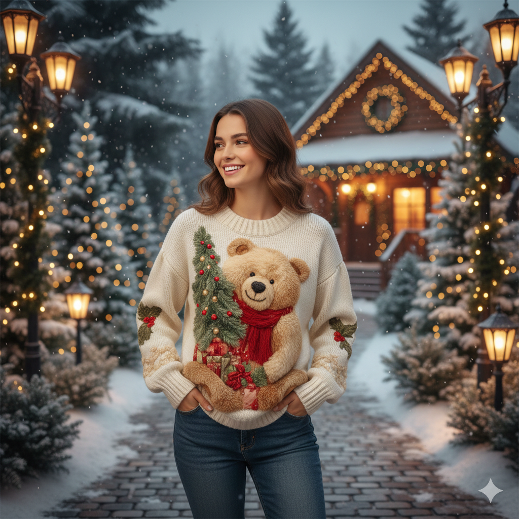 Combínala con jeans para un look casual navideño, úsala con leggings para máxima comodidad en casa, o llévala con pantalones elegantes para fiestas más formales. Su diseño pullover la hace fácil de poner y quitar. Perfecta para crear capas en días fríos o como prenda principal en interiores. Los estampados 3D la hacen ideal para fotos navideñas que destacarán en redes sociales.