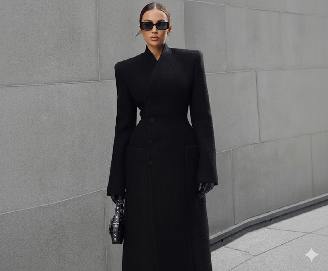Abrigo de Lana con Hombreras y Cinturón