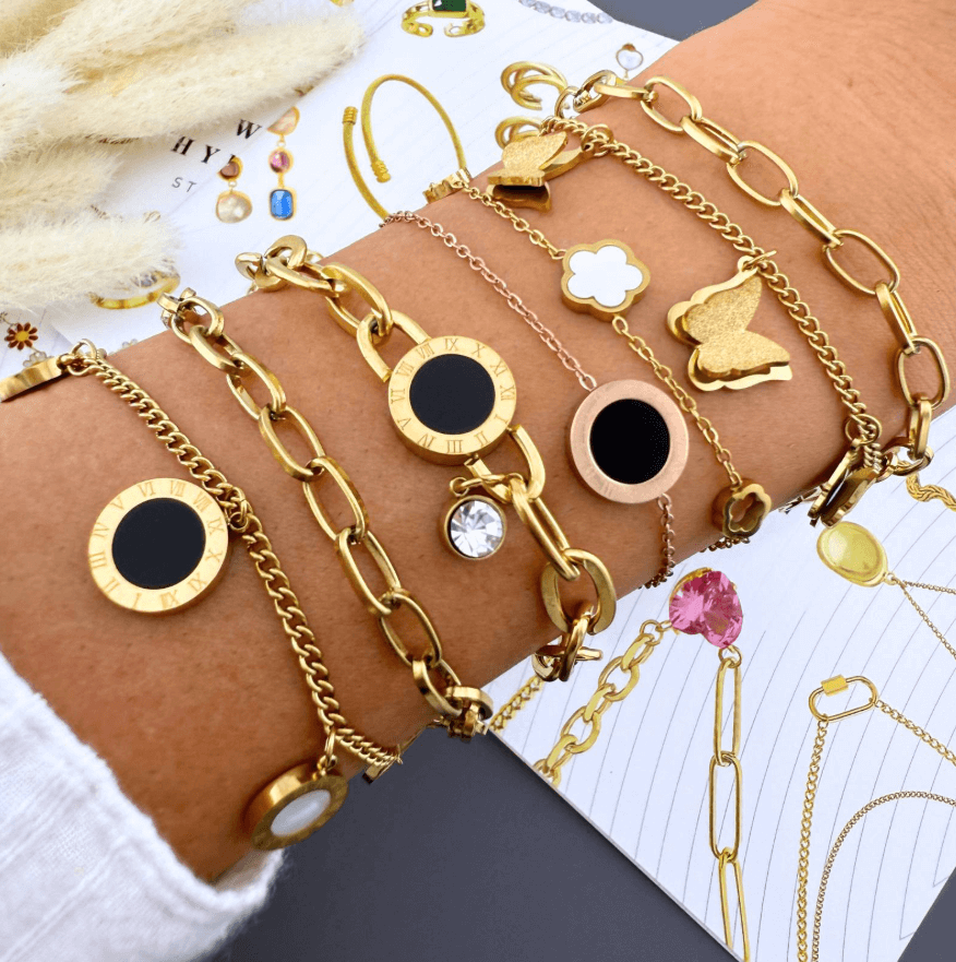 Elegante pulsera con circonitas brillantes y baño de oro 18K