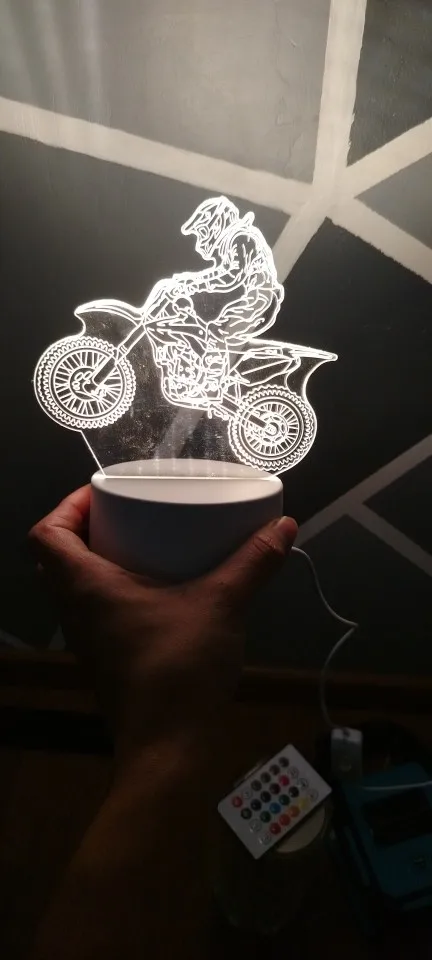 ¿Vives y respiras motocicletas? Esta luz nocturna 3D de motocicleta es el complemento perfecto para tu espacio. Con efecto óptico tridimensional que hace que la moto parezca salir de la base, 7 colores LED cambiantes y diseño ultramoderno, esta lámpara es mucho más que iluminación: es una declaración de tu estilo de vida motero. Peso equilibrado (330g) y bajo consumo para uso continuo.
