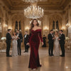 Lujo aterciopelado para momentos inolvidables. Un vestido digno de celebraciones especiales.